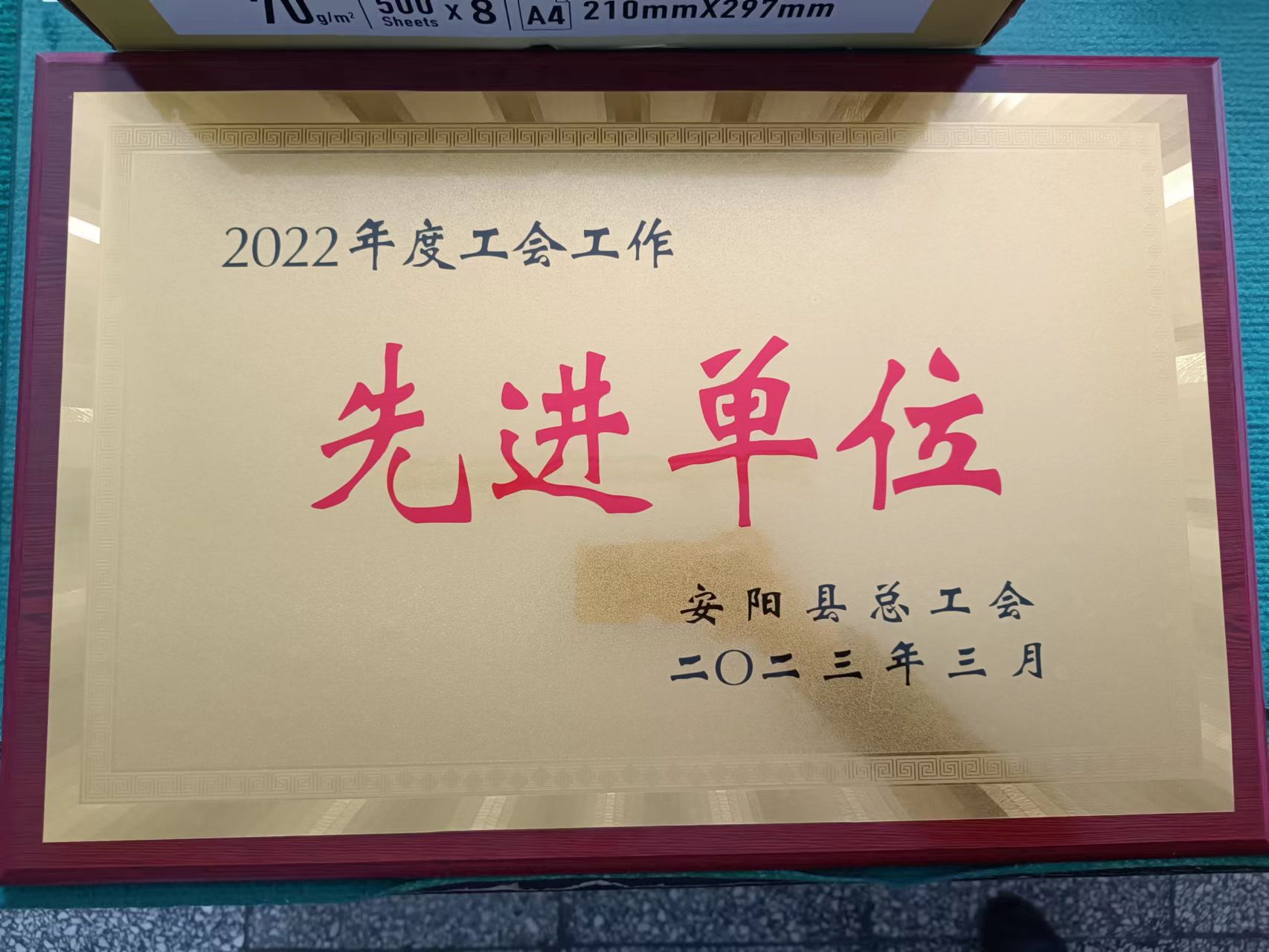 3月29日,公司工會(huì)被安陽縣總工會(huì)授予2022年度“安陽縣工會(huì)先進(jìn)單位”榮譽(yù)稱號(hào)。