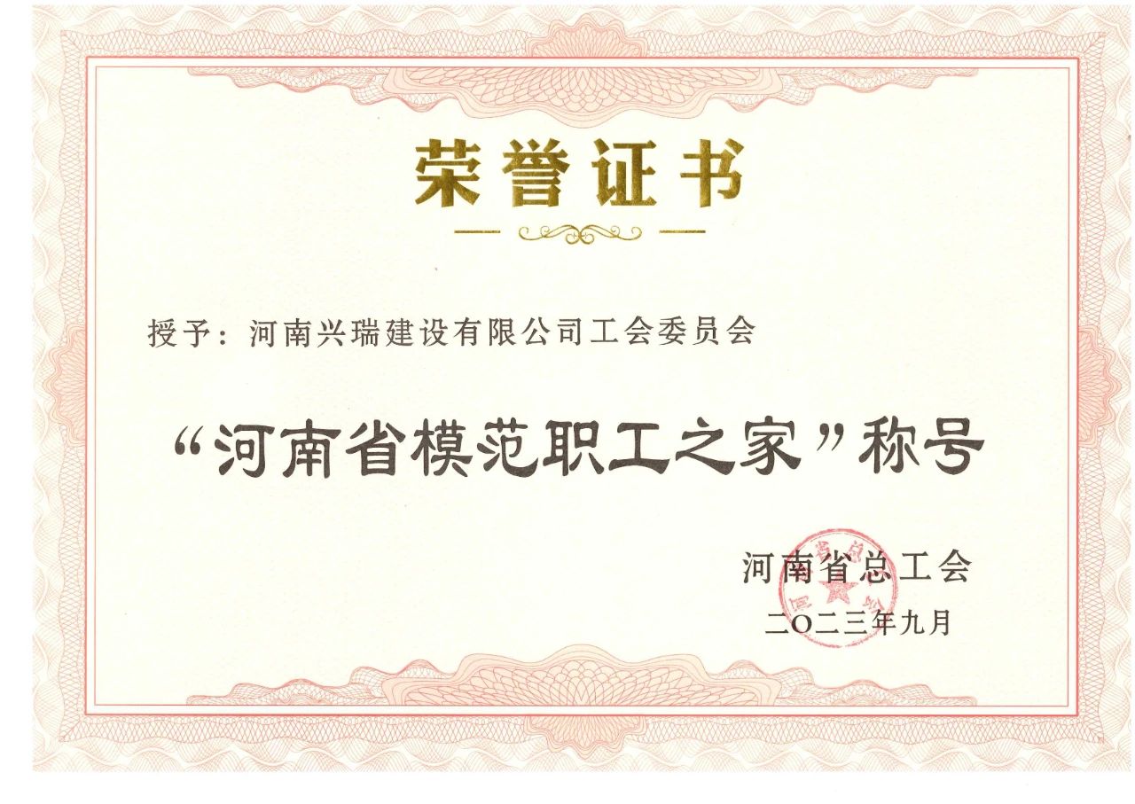 2023年9月11日,河南省總工會(huì)下發(fā)了《河南省總工會(huì)關(guān)于命名河南省模范職工之家、河南省模范職工小家、河南省優(yōu) 秀工會(huì)工作者、河南省優(yōu) 秀工會(huì)積極分子、河南省優(yōu) 秀工會(huì)之友的決定》(豫工發(fā)【2023】7號(hào))。河南興瑞建設(shè)有限公司工會(huì)委員會(huì)榮獲“河南省模范職工之家”榮譽(yù)稱號(hào)。