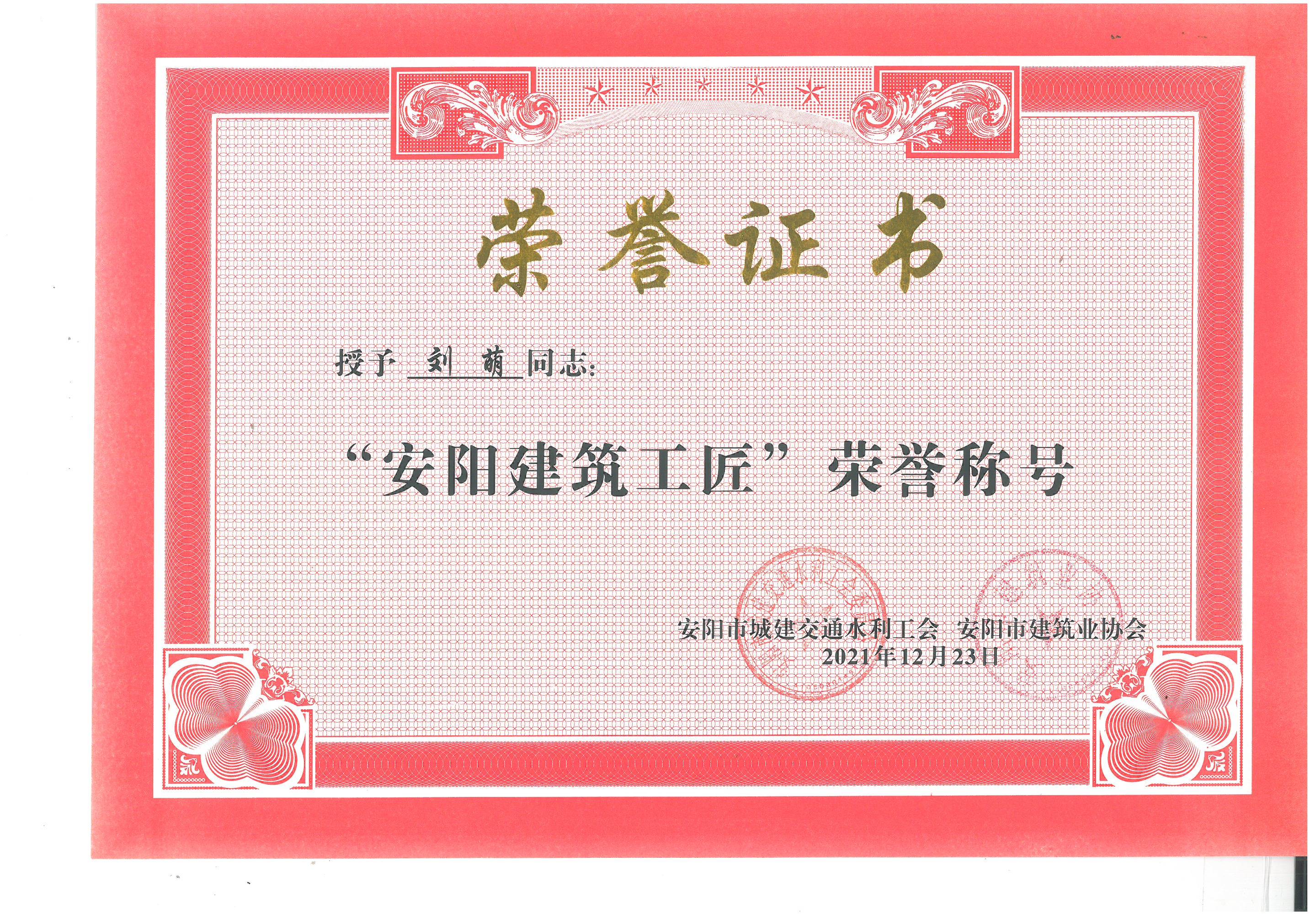 2021年,公司工會(huì)積極組織申報(bào)“安陽(yáng)建筑工匠”選樹(shù)活動(dòng),動(dòng)員廣大職工廣泛參與各類勞動(dòng)和技能競(jìng)賽,在比賽中切磋技藝、拼搏進(jìn)取、增強(qiáng)本領(lǐng)、奮勇?tīng)?zhēng)先,展示了公司職工的精神風(fēng)貌和高超技藝。劉萌、呂明潔2名職工獲評(píng)“安陽(yáng)建筑工匠”。