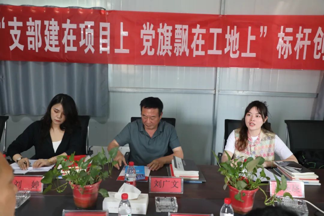 7月12日,河南省建筑業(yè)協(xié)會常務副秘書長劉廣文,協(xié)會黨支部副書記、副秘書長唐婉曉、信息傳媒部科員劉婷一行三人蒞臨公司承建的鶴壁凱旋廣場項目調(diào)研指導“支部建在項目上、黨旗飄在工地上”標桿創(chuàng)建活動。安陽縣委黨建特派員王天強、升龍置業(yè)總經(jīng)理王銘震、公司董事長牛敬堂、黨支部書記李振、項目經(jīng)理曹國 軍等參加會議。