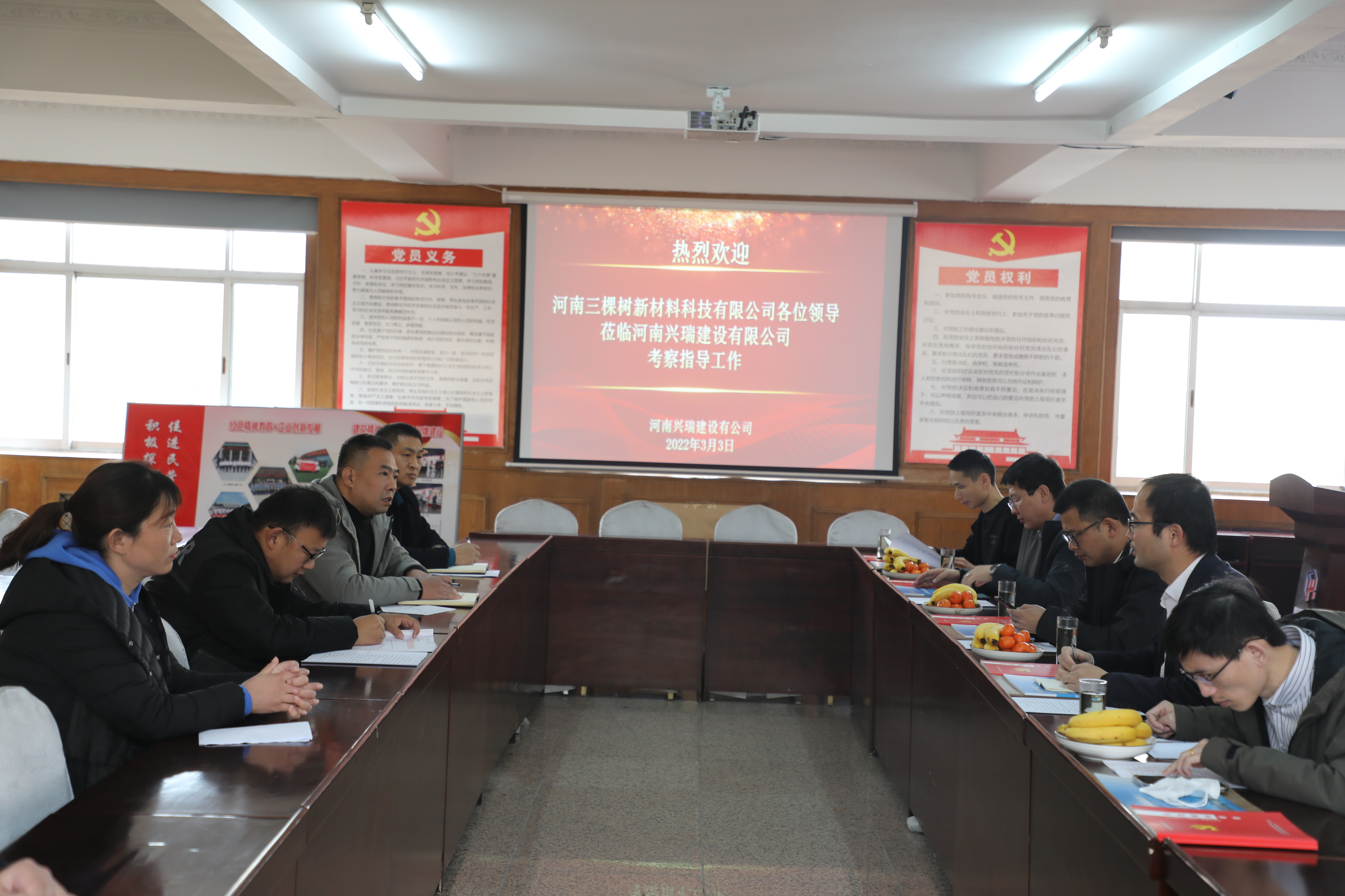 為進(jìn)一步增強(qiáng)河南三棵樹公司對公司全面了解,推進(jìn)雙方牽手合作,3月3日,河南三棵樹公司籌建總監(jiān)藍(lán)華春帶領(lǐng)考察團(tuán),蒞臨公司進(jìn)行實(shí)地考察,公司副總經(jīng)理常文魁、黨支部書記李振熱情接待。雙方在公司會議室進(jìn)行了親切溝通洽談。
